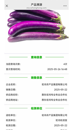 宏鸿以贯穿基地种植、运输、入库、储藏、出库、配送全程的六级监控体系,对食品进行360度安全管理,保证食品安全。